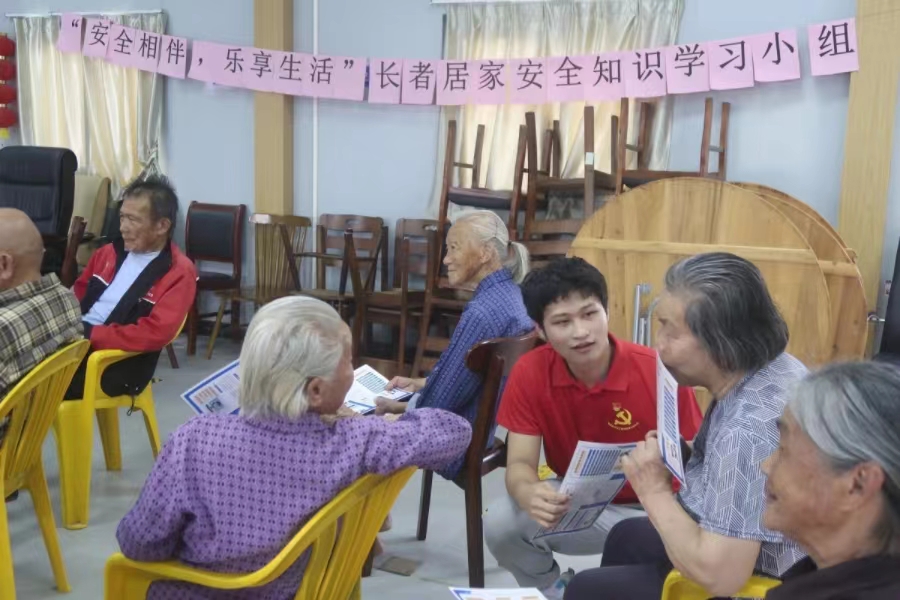 3月24日,伟德国际1946bv官网员工第二党支部开展“安全相伴,乐享生活”为主题的居家安全知识宣传志愿服务活动,组织党员们前往何棠下旧村改造临时安置中心探访社区老人和宣传居家安全知识。