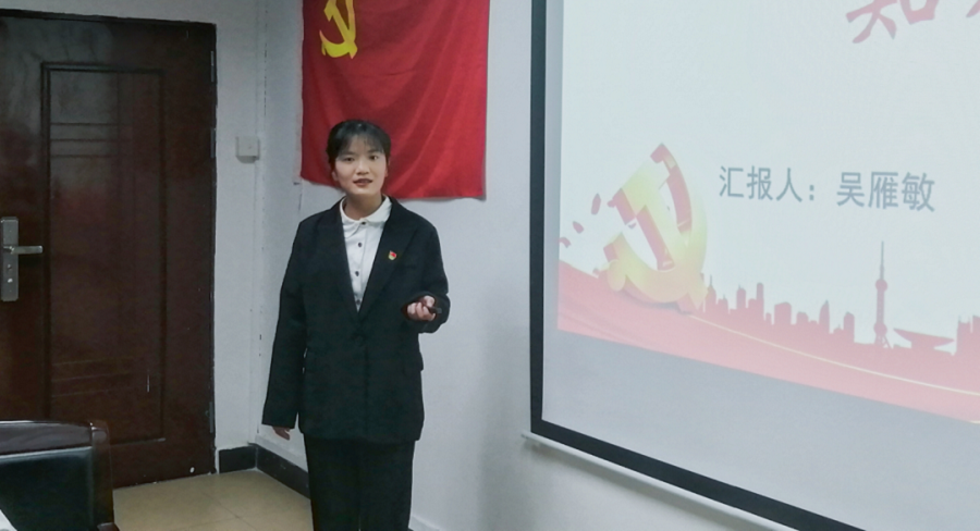 会议第一项议程,全体党员同志起立,奏唱国歌。紧接着会议第二项议程,由杨梦思等12位同志对自身预备期内的思想、学习、工作、生活等方面进行汇报与总结,再次明确自身入党目的性与行动力。随后进入会议第三项议程,由入党介绍人饶宏玉根据杨梦思等12位同志在考察期内的综合表现作总结汇报。会议进行到第四项议程,由支部宣传委员林奕锐报告预备党员在预备期内的考察情况。会议第五项议程,在8名具有表决权的党员依次对预备党员进行无记名投票后,由支部宣传委员林奕锐宣读支部大会决议,经支部讨论投票决定,一致同意杨梦思等12位同志转为中共党员。随后进入会议第六项议程,支部全体同志起立,进行入党誓词宣誓。会议最后,支部书记饶宏玉首先对按期转正的预备党员表示祝贺,接着她强调“一名党员就是一面旗帜,一个支部就是一个堡垒”,希望全体党员能够做到以下三点:一是要注重实际行动,坚持努力进取。二是要及时反思并改进不足,强化党员责任意识。三是要不断强化党性意识,筑牢思想之基,坚守初心,务实重干。