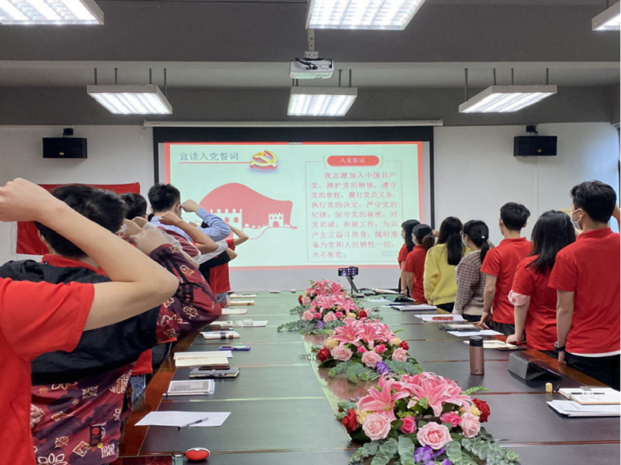 本次会议在庄严的国歌声中拉开了序幕。接着由梁健腾等3位同志依次向党组织汇报了一年来自己在思想、学习、工作、生活等方面的情况以及自己的不足之处,提出了改进的方向和决心,并表达了渴盼按期转为中共正式党员的愿望。随后由入党介绍人饶宏玉对梁健腾等3位同志在其预备期的表现进行评价,他们认真学习理论知识,提高思想水平,时刻用党员标准要求自己,在员工中起到模范带头作用,符合预备党员转正的标准。由支部副书记吴雁敏同志代表支部委员会报告梁健腾等3位同志在预备期间的教育考察情况。经支部拥有表决权的正式党员讨论投票决定,一致同意接收梁健腾等3位同志转为中共正式党员,由支部宣传委员林奕锐宣读了大会决议。全体党员起立重温了入党誓词,在铿锵有力的宣誓中,全体党员重新感受入党时的荣誉感和使命感,更加坚定了跟党走的信心和决心。会上,党支部书记饶宏玉对按期转正的同志表示祝贺,希望党员同志能进一步增强党性修养,不忘初心,砥砺前行。同时强调党员要更加严格地要求自己,不断提升思想觉悟,提高思想认识,强化责任意识,脚踏实地,严格遵守组织纪律,用心关爱身边的人和事,向优秀党员同志看齐,携手完善支部建设。