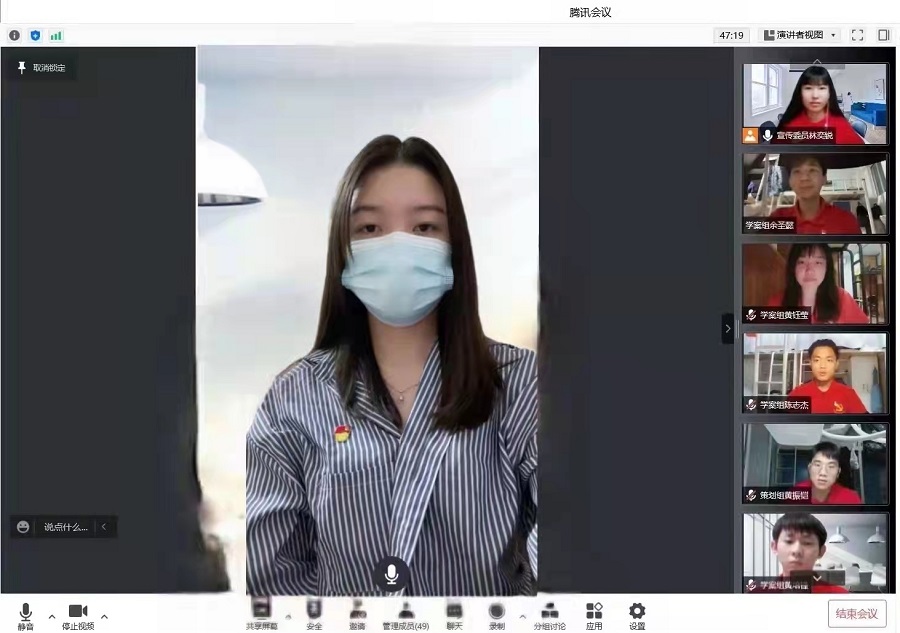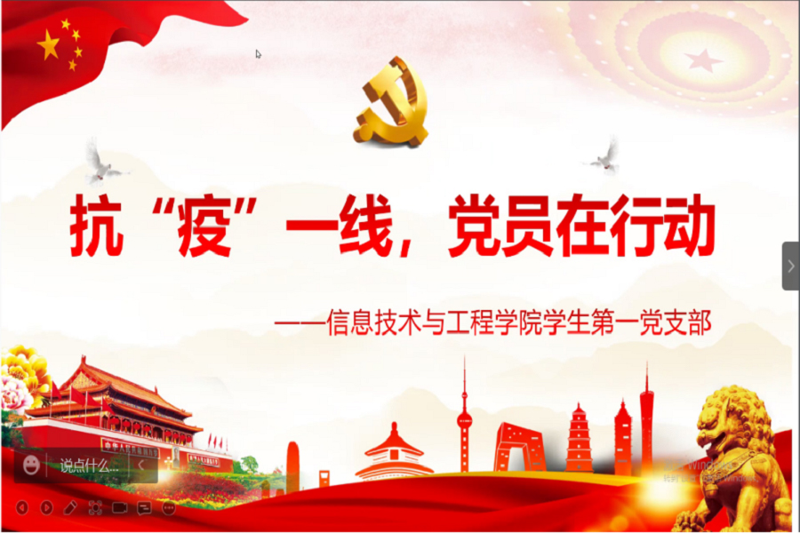 为深入贯彻落实中央关于疫情防控工作的决策部署要求,加强党建引领,切实发挥党组织战斗堡垒作用和党员先锋模范作用,助力全面筑牢校园疫情防控网。伟德国际1946bv官网员工第一党支部于4月24日晚上19点在腾讯会议开展了以“抗‘疫’一线,党员在行动”为主题的党日活动,以学习疫情防控指示精神和党员在行动的形式把主题党日活动开展在疫情防控第一线,参加本次会议的有党支部书记饶宏玉及全体党员同志,本次会议由支部宣传委员林奕锐主持。