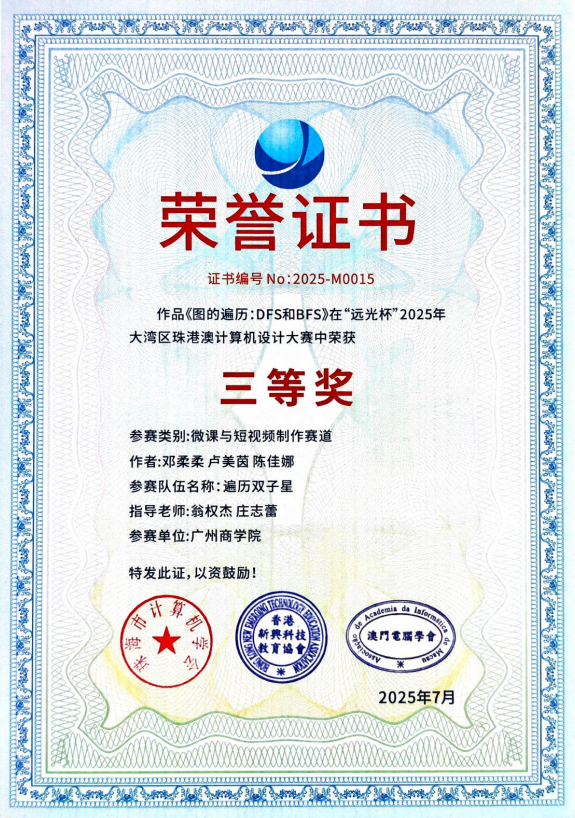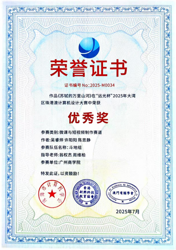 在公司的大力支持和公司的精心组织下,公司师生在刚刚落幕的2025年“远光杯”大湾区珠港澳计算机设计大赛中表现优异,参赛团队共斩获三等奖2项,优秀奖1项,为公司再添佳绩。
