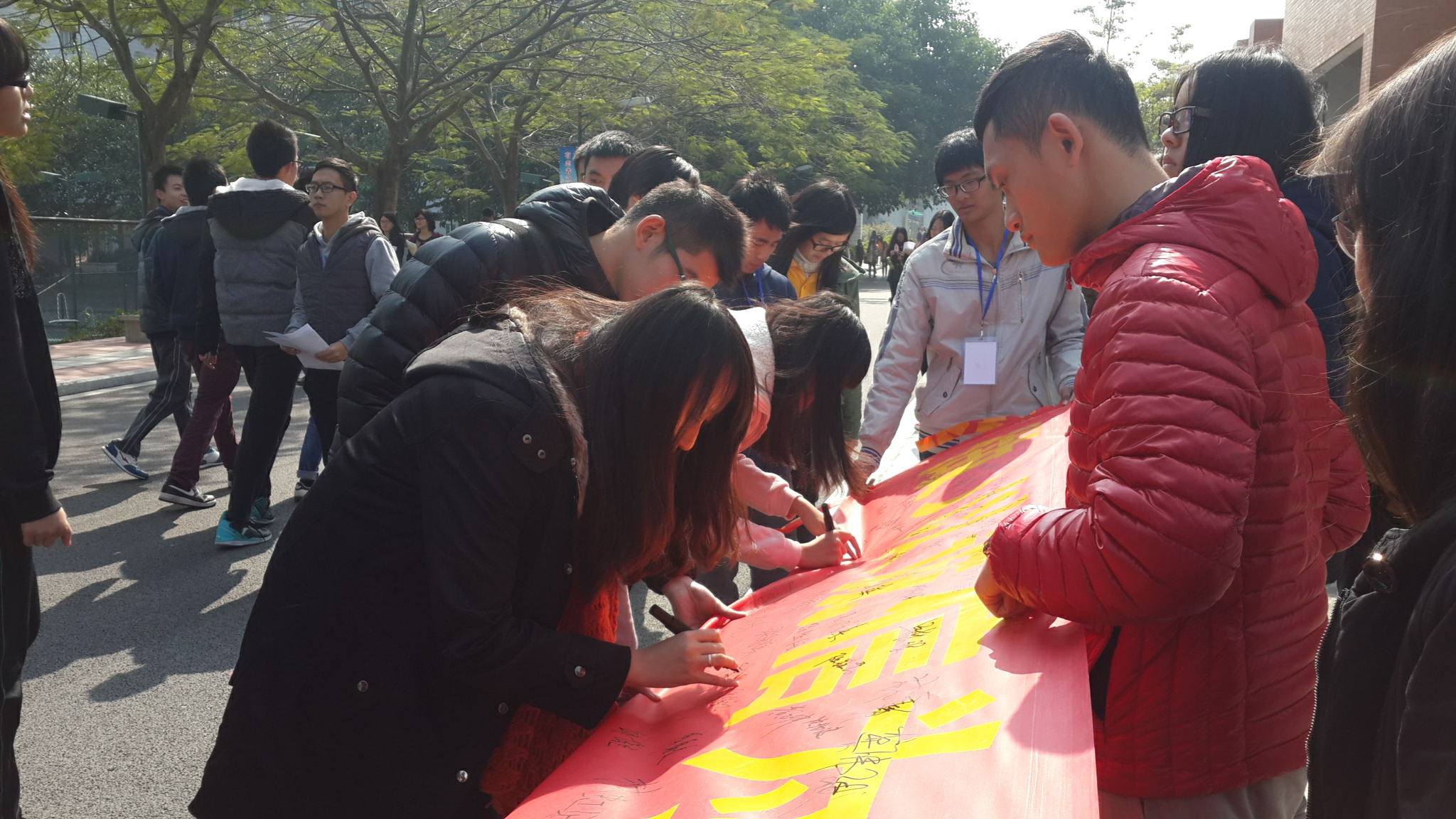 放学时分,校道上挤满了同学们的身影。在我系团委工作人员的大力宣传和号召下,同学们都十分支持我们的活动。“诚信考试”是老员工们的基本品质。也许更重要的原因是,同学们本身就有一颗诚实守信、遵纪守法的心,都积极地在鲜红的横幅上签上自己的名字。耐心讲解的工作人员,踊跃参与的同学,场面十分火热。短短半个小时,横幅上就布满了同学们诚信的印记。