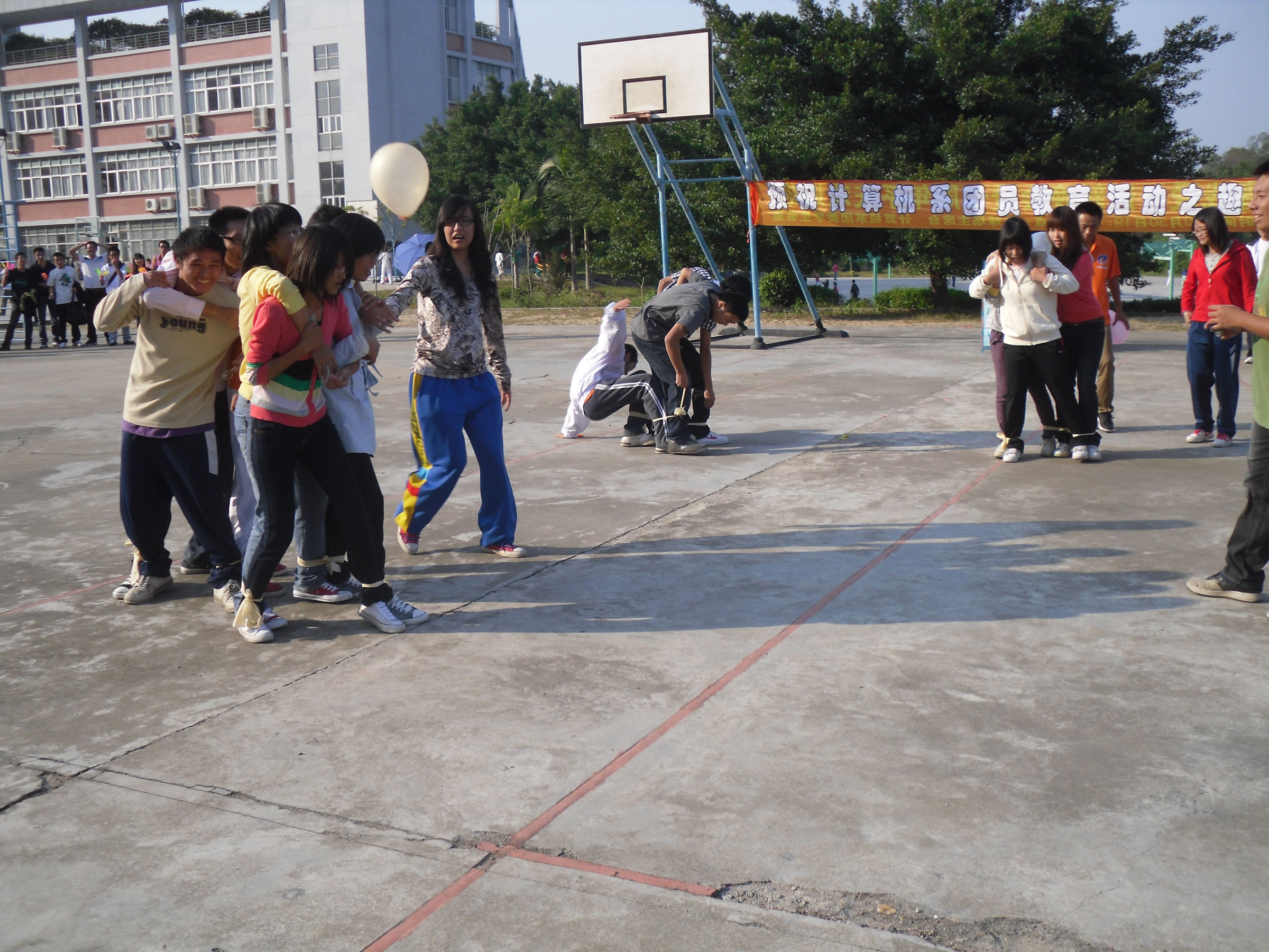 汗水在艳阳下挥洒,激情在青春里燃烧。排球场上,计算机系10级的同学们,个个精神饱满,辛苦地训练着,准备参加由我系团委主办,系员工会承办的计算机系新生团员教育活动之趣味运动。