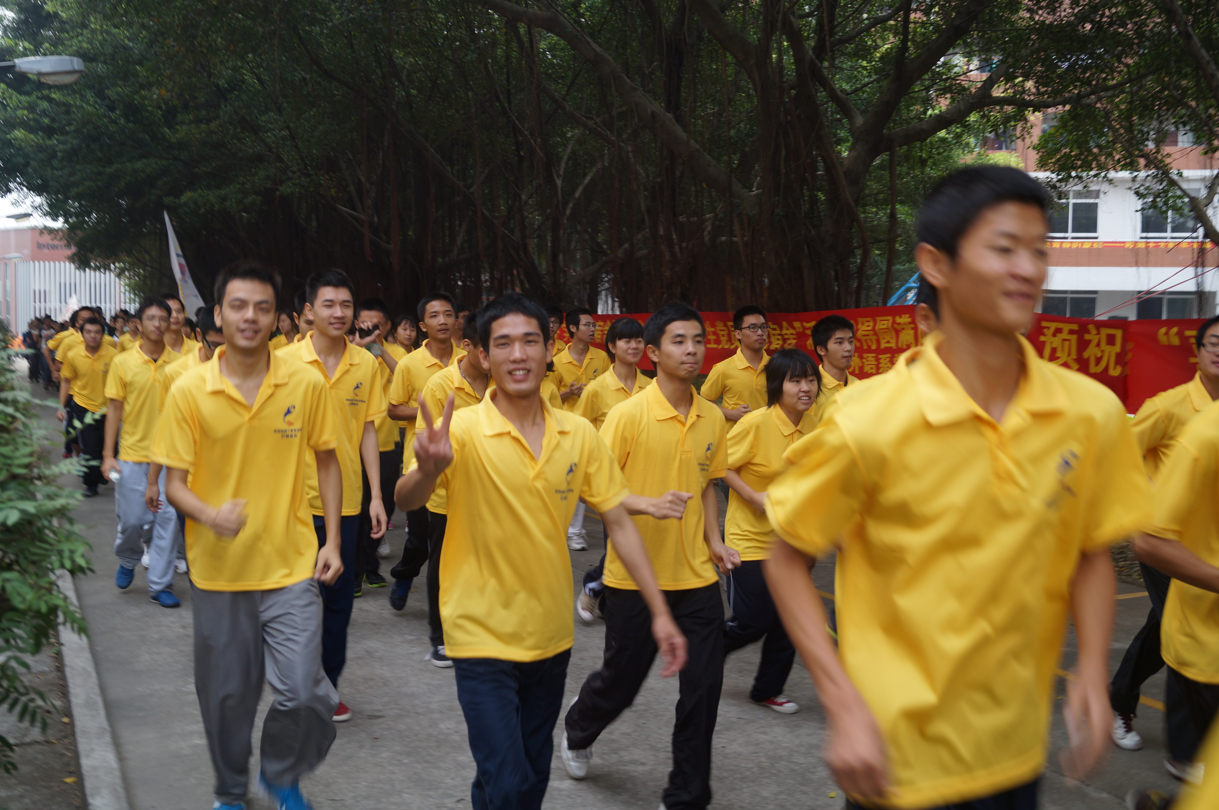 公司员工会的队列整齐,在旗手的口号下步伐一致,显得精神焕发、充满活力。而我们计算机系那雄壮的呼号声此起彼伏,响彻整个校园。艺术系的助威团更是热情四射,更加增强了呐喊的阵容。一路下来同学们都保持着良好的队形和精神面貌,引得公司师生的广泛关注和阵阵好评。