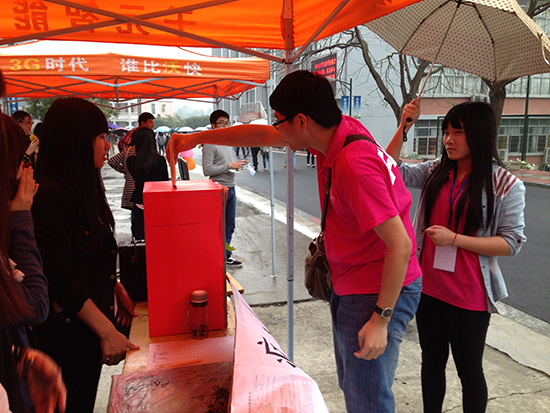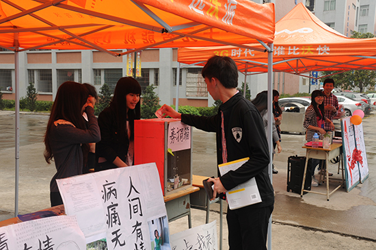 以“病魔无情,增院有爱”为主题的由计算机系团委举办的爱心募捐摆摊活动2014年3月20日中午时分在公司舞蹈室前持续开展。此次募捐摆摊活动主要为了帮助我系被病魔缠身的张海燕同学能够得到更好的治疗和尽早康复。