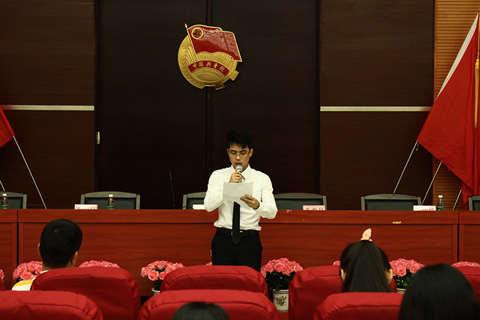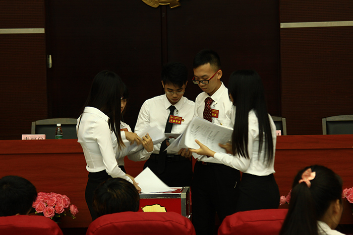 在预备会议主持人的宣读下,听取并通过了本次会议的代表资格审查报告,且讲解了本次会议的相关事项,为紧接的正式会议铺垫了坚实的基础。伴随着庄严的国歌声,本次大会也正式拉开了序幕。此后,公司团委书记何柏略为大会致开幕词,讲话中肯定了过去一年中计算机系的工作,正是因其勇于开拓创新、努力进行各方面的建设,才会取得如此优异的成绩,同时寄语此次会议的候选委员,能够牢记竞选的初衷,以服务同学为己任,争取为计算机系贡献出自己的一份力。紧接着的是由计算机系团委书记王轻纱老师以及员工会主席冯锦峰同学分别阐述了团委、员工会的工作报告,在他们的工作报告中,简要地回顾了过去两年各项工作的情况,对于工作中的经验以及教训做出了总结的同时,并对今后的发展也作出明确的规划。