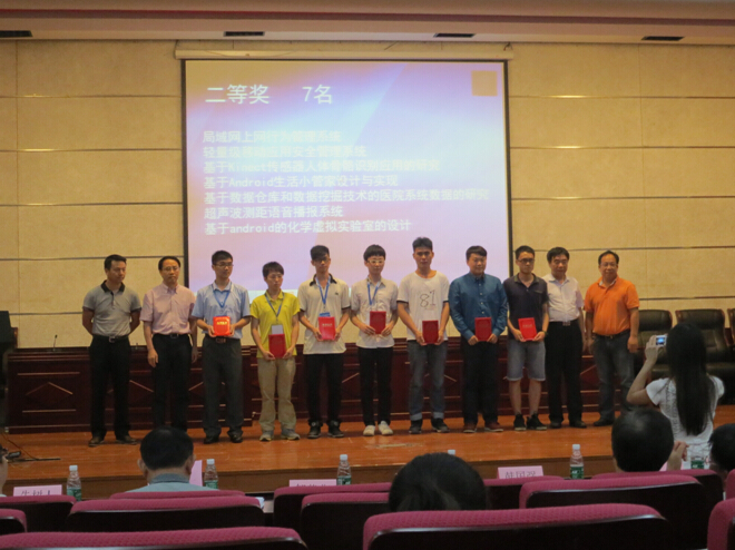 比赛由广东省计算机学会主办,广东财经大学信息公司承办,旨在加强广东省计算机教育的交流、促进计算机专业教育质量的提高。竞赛从作品的选题来源、科学性、创新性、开发难易程度、实用价值及展示效果、文字描述质量等多方面进行评比。吸引了包括中山大学、华南理工大学、暨南大学、华南师范大学、广州大学、华南农业大学、bevictor1946韦德官网等省内20多所高校作品参加评选。比赛评选出一等奖4名、二等奖7名、三等奖24名。其中,在邹艳碧和胡允娥等老师的指导下,计算机系李晓文、潘海权、廖梓竣、邓登科、邝婉敏和刘峭峰等6位员工共同设计的作品“超声波测距语音播报系统”经过现场答辩最终获得二等奖。李晓文、潘海权、廖梓竣、王俊荣、林翰奕和陈浩亮等同学设计的作品“物联网智能家居系统”获得了三等奖。