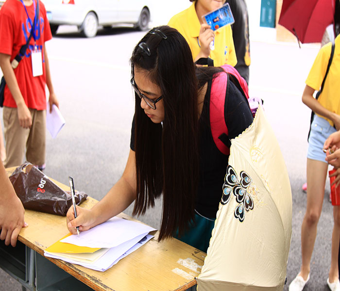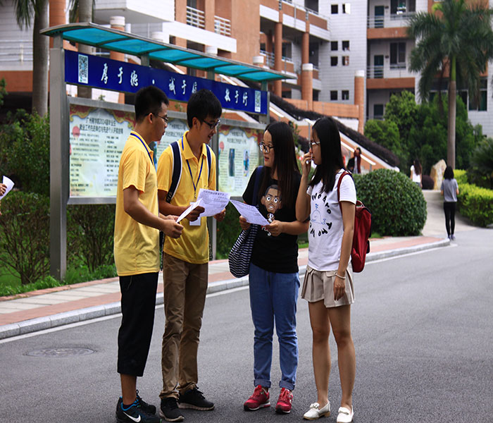 宣传初始时,天气的湿热让人感到浑身不舒服,但这并不能磨灭干部干事们的宣传热情。还没到下课时间,干部干事们已经身着明黄色工作服,在校道上等待同学们的到来。而对本次活动感兴趣或存在些许疑惑的同学,工作人员积极详细地为其解答,并对“三下乡”社会实践活动的内容作出系统性的介绍,让同学们对此次活动有大致的了解。