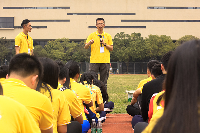 活动开始前,信息公司团委副书记郑泽成同学发表讲话,要求干部们能积极参与到此次培训中,希望增进每位干部之间的交流与协作,更好地融入团委这个大家庭。热身运动后,在助教的带领下进行分组,随着分组的完成,本次培训亦正式开始。伊始,每只队伍都开动脑力为自己的团队取名字,并在团队展示中,在其队长的带领下分别喊出了铿锵有力的队名以及响亮的口号,赢得了来自其他组成员的掌声,现场气氛热烈。
