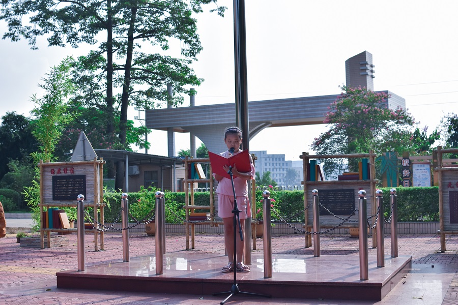 活动伊始,随着国歌的响起,全体成员肃立,队员与同学们的目光注视着国旗缓缓地升起,爱国的情绪都化成了声音,体现在了队员们演唱国歌的分贝上。在这之后,各班同学代表上台进行国旗下的演讲,没想到同学们小小的身躯里,却有着大大的梦想与抱负,同学们的才华,在那一张手稿纸里体现的淋漓尽致,“关关雎鸠,在河之洲”,诗经中的词句被同学们灵活使用,让人感叹同学们的满腹经纶;我为祖国唱赞歌,同学们高尚的品质,对祖国的感恩之心,让人感慨同学们感情的真挚;尽管有同学的发言十分朴实,没有太多华丽的辞藻,但是那份心意,却也是值得我们去赞许的。在活动的最后,由服务队队长梁瑞聪做总结发言,他希望同学们增强自己的爱国主义精神,去积极的参加爱国主义活动,在活动中锻炼自己,提升自己,在活动中感受祖国的新变化。