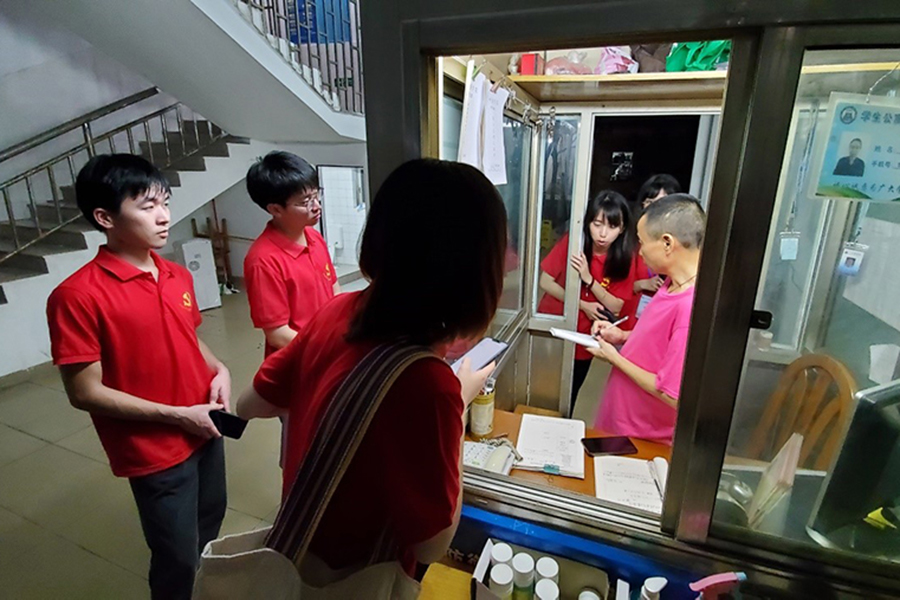 同时员工党员下到宿舍巡查,与新生亲切交谈的过程中了解到宿舍存在的未解决的问题,在将这些宿舍问题收集汇总后立即向宿舍管理工作人员进行了登记保修。
