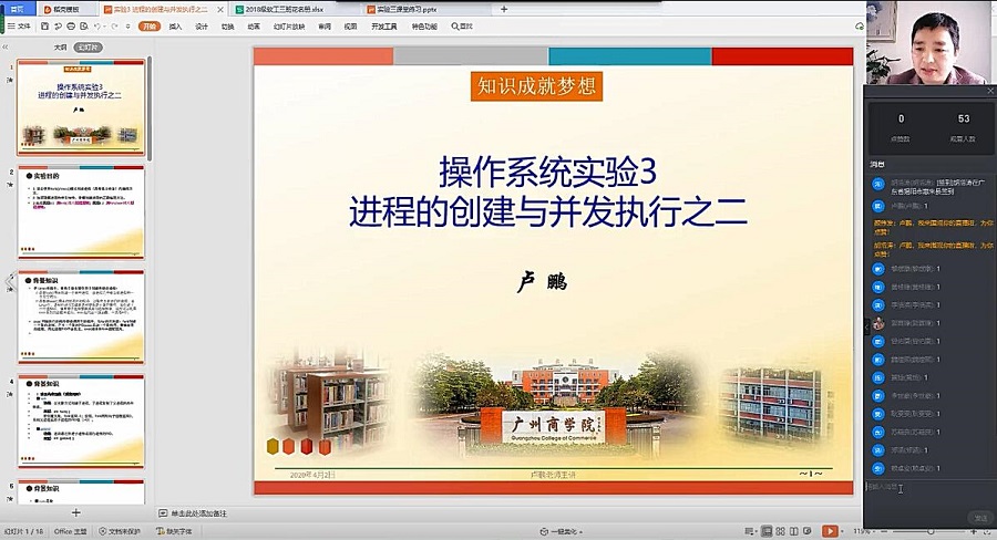 停课不停教、停课不停学,为贯彻落实公司网络教学工作部署,为不断提高网络教学质量,伟德国际1946bv官网于4月2日组织了“操作系统”课程网络教学公开课,课程由卢鹏主讲,授课对象为软件工程专业1803班员工。公司督导员邓志才副教授,公司35位教师参加了活动。
