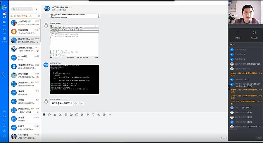 本次公开课采用钉钉和超星学习通两个在线教学平台相结合的方式,讲授了一堂操作系统实验课。教学组织过程按照实验任务布置、主要知识点讲解、教师演示、员工操作、教师检查、思考与讨论等几个环节进行。师生交互主要通过钉钉签到、教师提问、在群内回复以及员工疑点及实验操作结果截图,教师即时反馈的方式进行。教学现场气氛热烈,互动频频,达到了员工跟得上、学得会、做得出、理解透的教学效果。利用超星平台,卢鹏还将课后作业的布置,教学资料整理及课程视频回放上传至学习通教学平台方便员工课后学习。