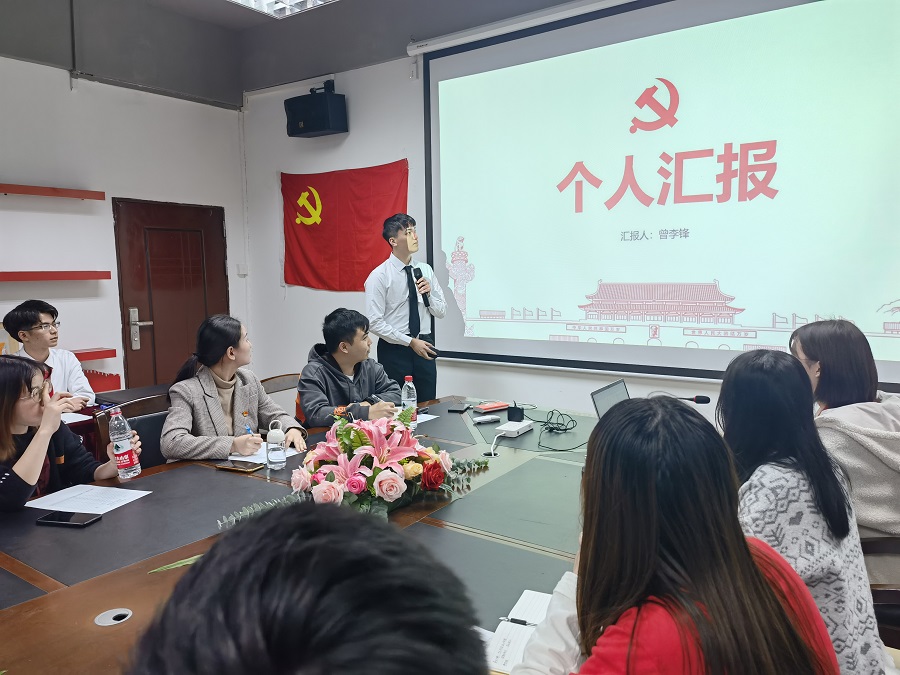 由入党介绍人杨艳美和甘志健同志分别从政治思想、学习成绩、生活作风等方面介绍发展对象的主要情况,在对高聪岩等13名重点发展对象的表现表示肯定的同时,还鼓励他们加强理论学习,时时关注国家时事政治,坚定政治立场,秉持为人民服务的宗旨,投身社会建设,在实践中磨练坚毅的党员品质。
