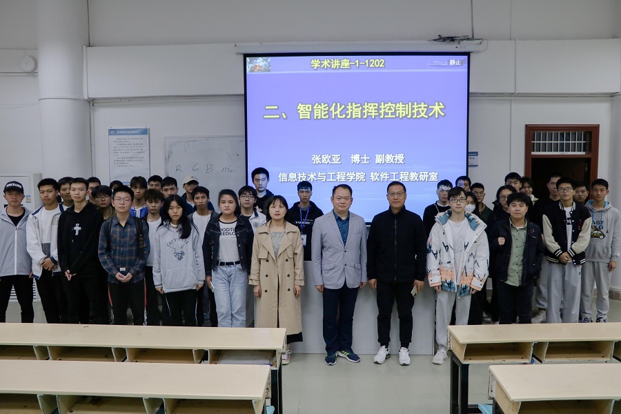 张欧亚博士首先讲解了指挥信息系统的概念、组成和分类。他讲到,指挥信息系统是以计算机网络为核心,由指挥控制、情报、通信、信息对抗、综合保障等分系统组成,并对作战信息进行实时的获取、传输、处理,用于保障各级指挥机构对所属部队和武器实施科学高效指挥控制的军事信息系统。随后,他向师生们讲解指挥信息系统在战争中所具有的四大作用,使师生们对指挥信息系统在战场上存在的意义有了更深入的了解。对于指挥信息系统的发展趋势,他表示,指挥信息系统正由“烟囱式”向一体化发展,需要统一规划、统一标准、统一软件平台;向智能化发展是主要的趋势。紧接着他向师生们系统介绍了智能化指挥控制技术,特别是美军的相关探索,详细讲解了“深绿”系统、“阿尔法”人工智能空战模拟系统和指挥官虚拟参谋的组成及工作原理,以及其采用的模糊逻辑遗传算法、深度学习、智能辅助决策、多种新型人机交互技术。并强调了美军在智能化指挥控制方面探索应用的多种高新科技对于民用多个领域都有重要的应用价值和借鉴推广意义。在讲到智能人机交互、人机协作技术时,张欧亚博士还结合自己博士论文研究,向师生们阐述了指挥信息系统的面向Agent分析与设计思想。其中包括:把人纳入用户界面类Agent的分析与设计中,并将人与监控计算机看作是互动共栖的紧密耦合体,从而在人机协同的情况下快速作出相应的决策。张欧亚博士不仅在学术思想方面给了师生们启迪,同时也给出宝贵的建议,激发师生思考。同学们也抓住这次难得的机会,在讲座结束后与老师积极沟通。员工告知已掌握一些相关技术、接触过相关项目,现在想去参加科技类比赛,请教张欧亚博士如何做到软硬融通,如何把学到的知识转化为实际成果。张欧亚博士均耐心地做出回答。