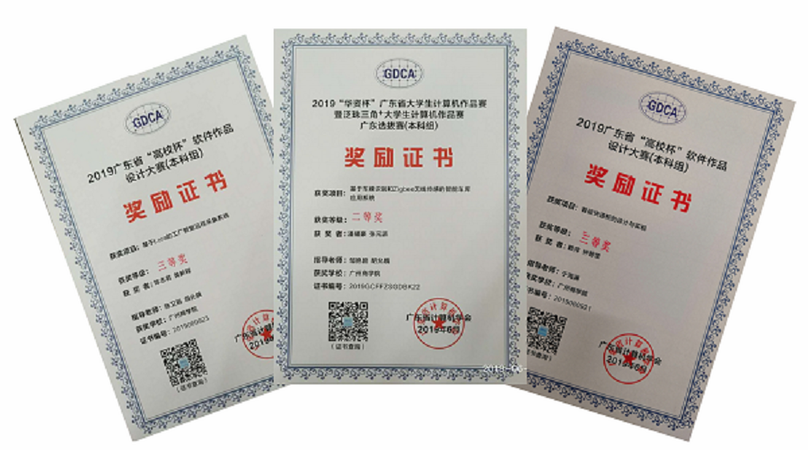 2019年广东省老员工计算机设计作品赛于6月9日在华南农业大学举行。在公司伟德国际1946bv官网指导教师邹艳碧、胡允娥、陈卫丽和于海澜等老师的指导下,伟德国际1946bv官网的潘耀豪和张元派等员工共同设计的作品“基于车牌识别和Zigbee无线传感的智能车库应用系统”经过现场答辩最终获得二等奖。赖萍和钟碧莹等同学设计的作品“智能快递柜的设计与实现”, 陈志君和黄新诚等同学设计的作品“基于Lora的工厂数据远程采集系统”均获得三等奖。