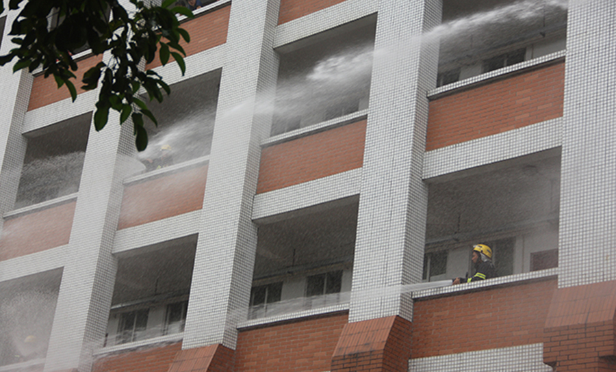 此次消防演习的地点为3号公寓,在所有相关人员与物资到齐后,一声“演习开始”拉开了此次演习的序幕。当看到宿舍楼冒出模拟的浓烟后,bevictor1946韦德官网义务消防队与在场的所有教师们便冲进宿舍楼救助“受困”的员工,没过多久九龙消防中队便来到现场,接替bevictor1946韦德官网义务消防队与教师的任务,展开了一系列救援措施。消防官兵们下车、取出消防器材、冲进宿舍楼灭火救人,一切步骤一气呵成,没有半点犹豫与懈怠。经过大家的一番努力,成功救出了所有人员并扑灭了大火。接着公司党委书记吕泉荣与对此次演习做出了点评,其肯定了此次演习的成功,强调了“救人第一,灭火第二”的原则。随后保卫处处长胡成业提出了演习中存在的一些问题与对应的解决方法。随后校保卫处陶勇军向新生们亲自演示了防毒面具与灭火器的使用方法,还挑出了部分员工代表进行具体操作,做到在实践中学习,在学习后实践。
