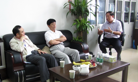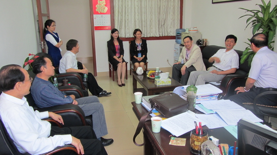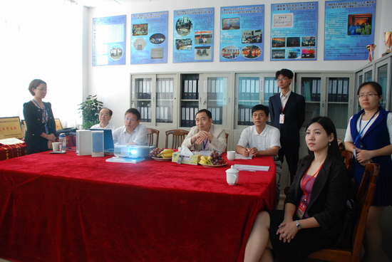 计算机系主任陶培基教授(右一)向评估专家介绍计算机系办学概况