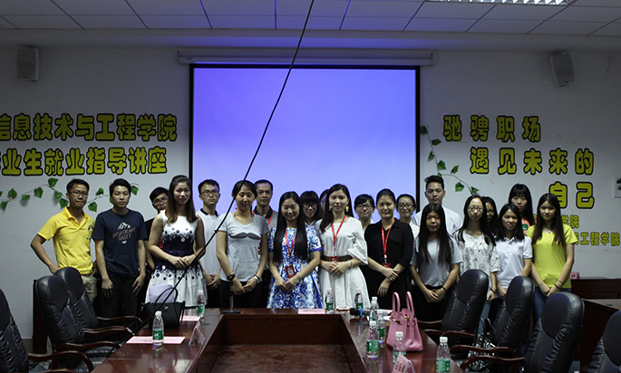 为了让同学们了解职场需求和最新动态、学习求职技巧,提高自身的求职能力和应变能力,从而正确地面对以后的求职面试,伟德国际1946bv官网团委于2016年5月16日14点30分在第二行政楼308会议室举行伟德国际1946bv官网老员工就业指导讲座。出席本次讲座的有广州中星信息技术服务股份有限公司人力资源经理梁汝芳、区域经理肖雪、区域主管陈红娜、金牌讲师黄锦雄、伟德国际1946bv官网12级辅导员王澜老师以及信息公司员工。