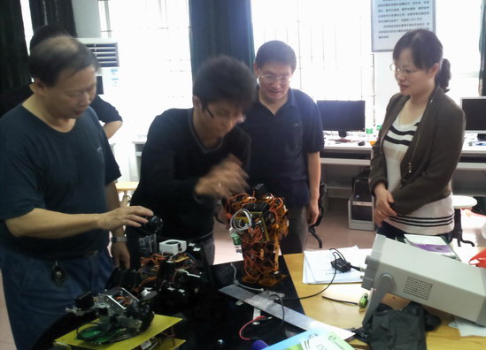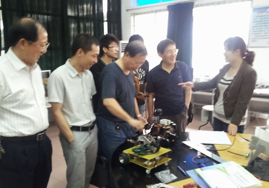 陶培基报告了创新实验室的建设历程、重点建设项目以及员工作品成果等。计算机系文哲雄副教授介绍了员工在创新实验室里研发的作品,并现场指导了员工进行作品演示。贺璐璐在陶培基等人的陪同下,参观了计算机系员工在国家、省级学科竞赛中获奖作品“智能小车”(2011年全国老员工电子设计竞赛全国二等奖)、“智能机器人”(2011中国教育机器人大赛中荣获特等奖和一等奖),以及今年计算机系员工在毕业论文(设计)作品中自主设计开发的 “智能家居”、“运输车”等。
