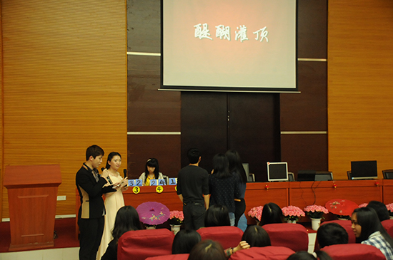 决赛伊始,主持人介绍了莅临本次大会的嘉宾和评委,他们分别是:公司冼德庆副经理,公司团委何伯略书记,计算机系党总支钟远辉书记,会计系团委蓝乐钿书记,计算机系团委黄玉婷书记,计算机系团委王澜副书记,计算机系辅导员王轻纱与张泓老师,公选课国学智慧教师王相东老师以及各系兄弟代表。