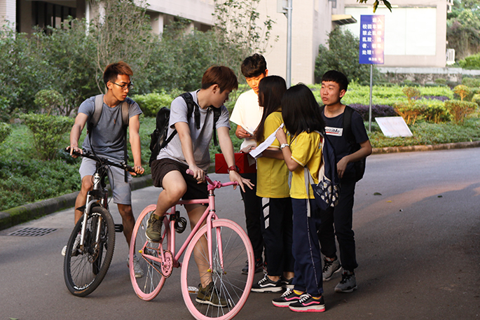 过往同学停下脚步认真听讲