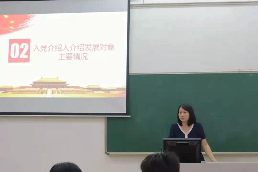会议严格按照预备党员接收大会议程进行,首先由许航等35位重点发展对象分别就个人简介、入党动机等方面进行简短的汇报。由入党介绍人陈素婷等8位党员同志分别从政治思想、学习成绩、干部经历等方面介绍发展对象的主要情况,在对许航等35名重点发展对象的表现表示肯定的同时,还鼓励他们要继续学习党的理论知识,时时关注国家时事政治,坚定政治立场,不忘初心,牢记使命,用优秀党员的标准严格要求自己。接着,由党支部组织委员向大会报告支委会对发展对象的审查情况,宣布许航等35位重点发展对象的审查结果全体通过。在与会党员对发展对象是否符合党员条件发表意见进行不记名投票表决环节时,非正式党员在会议室外稍作等候。统计票数后,由党支部宣传委员宣读支部大会的决议,同意许航等35名重点发展对象转为中共预备党员。