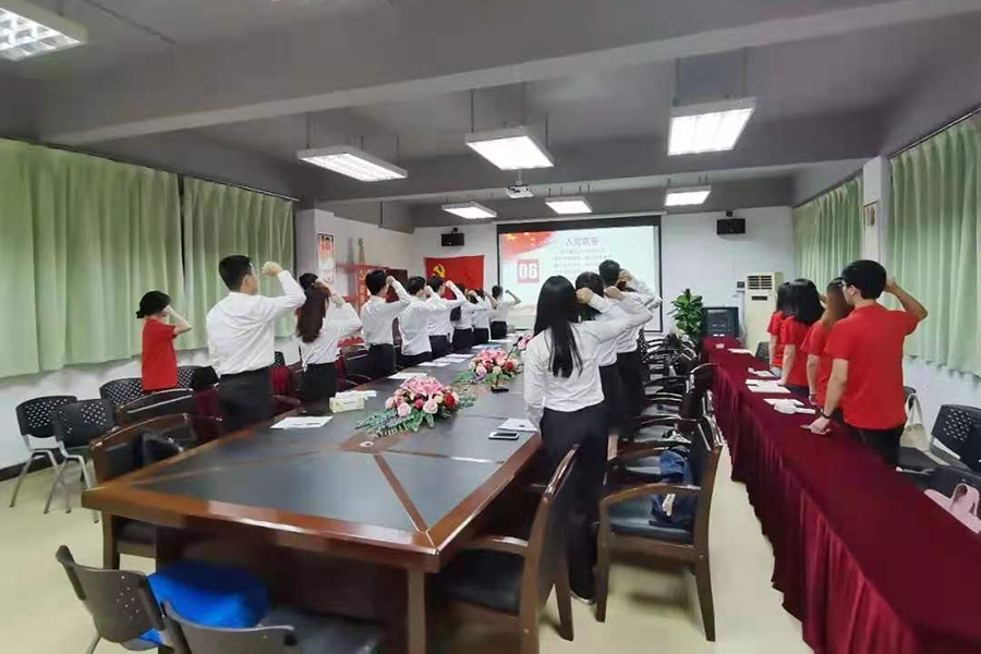 会议最后,全体员工党员起立面对鲜红的党旗,高举右拳庄重宣读入党誓词,铮铮誓言,让员工党员心中产生强烈的共鸣,立志做到在行动和思想上入党,在工作和生活中发挥先锋模范作用,做一名称职的、合格的、无悔于党员称号、无悔于入党誓词的一名共产党员。