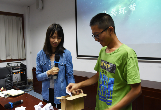 到了各部门的自我介绍环节,在主持人钟杏燕同学的引导下,信息公司团委七个部门依次登场,各部门各具特色的出场方式活跃了现场的气氛,各部门成员的自我介绍也让彼此有了初步认识。紧接着是游戏抽奖环节,刺激的游戏与丰厚的奖品让在场的干部们沉浸在欢声笑语中,本次见面会也落下帷幕。