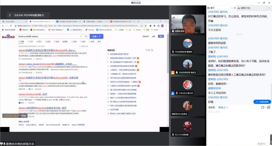 讲座伊始,谢景明博士从人工智能的技术分类和应用趋势讲解了人工智能在学术上的三种流派,分别为对人类已有知识进行组织编辑的符号主义、通过数学理论公式推倒聚类和预测问题的连接主义,以及利用机器仿生物活体行为的行为主义。其中知识图谱便是一个典型的符号主义,谢景明博士更是将连接主义形象地比喻为“聪明的AI”,而符号主义则是一个“有学识的AI”。谢景明博士用通俗易懂的语言向师生们解释了知识图谱的定义及运用原理,同时也指出知识图谱是一种描绘实体键关系的语义网络,是认知智能的必要基础。紧接着,他以医疗、法律领域的例子,向师生们展示了知识图谱能够将没有联系的实体进行连通,让离散的数据能够整合,从而形成一个巨大的联系网。在互动问答环节中,老师和同学们积极提出算法应用、知识图谱概念等问题,谢景明博士对此相应做出回答,并希望师生们能合理运用知识图谱,在提高工作和学习效率的同时,为未来的研究提供更多可钻研的方向。
