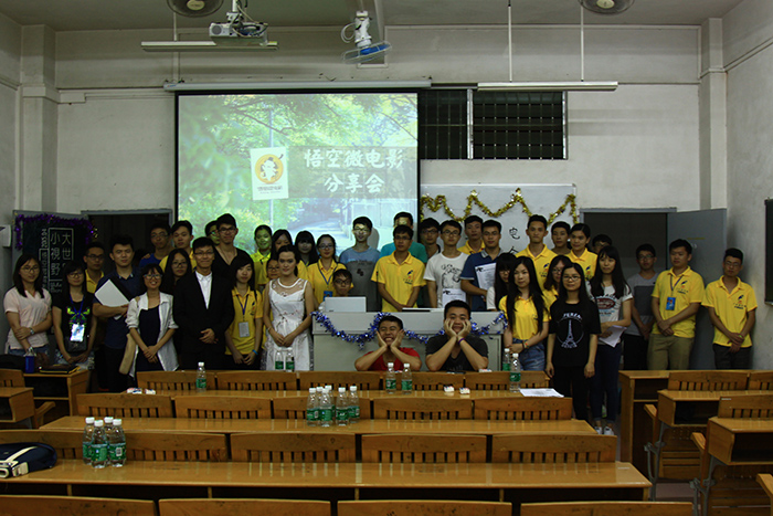 伴随着久经不息的掌声,由计算机系团委联手悟空微电影举办的悟空微电影分享会于2015年5月31日晚7点在A105教室正式拉开了序幕。莅临本次活动的嘉宾有计算机系团委副书记麦丽仪同学、组织部部长陈俊宇同学、秘书长林奕希同学以及各兄弟系代表。