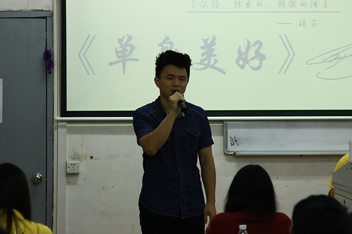 在播放了一段简介悟空微电影及此次活动目的的视频后,本次校内优秀作品分享会便正式开始。首先带来的作品是《Diary》,这部作品是以一本日记本作为线索而展开的,倾述了一段因遗失的日记本而给生活带来一些波澜起伏的故事。随后带来的作品是《单身美好》,通过给歌曲配上MV的形式,将作品活灵活现地呈现在各位观众的眼前,同时也告诉各位不要害怕孤身一人,单身美好,其实未来会更好。过后,便迎来游戏环节——疯狂猜成语,竞猜者的出色表现渲染了现场的气氛,更是惹得观众跃跃欲试,想要上台替其作答。