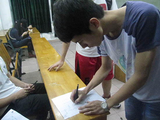 为了挑选出能进入本次“汉字输写大会”决赛的优秀选手,初赛阶段我们团委采取笔试的方式进行测试。笔试分为了三个部分:第一个部分是听写词语,在听写词语中我们可以选出识字度较强的选手;第二个部分是成语解释,成语解释考得更多的便是对汉字文化的积累以及理解;第三部分则是考察文言文,通过文言文的翻译,我们可以更好地筛选出在汉字和文学上有一定功底的选手,也为大会决赛的精彩上演奠定了基础。测试完毕,通过工作人员对选手们的试卷进行批改打分,不难发现选手们都是有备而来的。真可谓是百里挑一,在百多名的参赛者中挑选出6位脱颖而出的汉字最强音还真不是一件简单的事情。