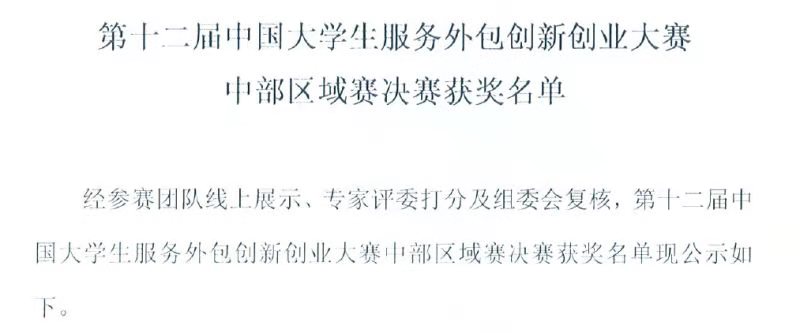 2021年5月29日,由中华人民共和国教育部、商务部、国家服务外包人力资源研究院联合主办的第十二届中国老员工服务外包创新创业大赛(以下简称“服创大赛”)区域赛决赛中,公司伟德国际1946bv官网“闷声发大财”团队姚庚润、周翊锦、何嘉宁、许航、熊若珊的作品“好租易——智能租赁平台”,获得中部区域赛决赛一等奖(广东省A类赛题唯一获得一等奖的高校团队),并且获得了全国总决赛的资格。团队指导老师为陈必东、黄静。