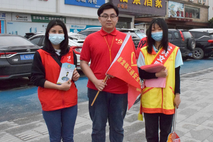 活动开始,信院志愿者在新龙镇社工服务站进行站岗培训,并领取志愿物资。随后信公司党支部成员以及志愿者统一着装,身穿黄马甲和红色党服分包路段进行帮扶工作。志愿者在执勤过程中对道路做出闯红灯、超载、不带头盔等不文明行为的市民进行劝阻,提醒其不文明行为对城市以及对生命造成的不良影响,同时还帮助儿童以及老人过马路。通过分包路段,党支部成员和志愿者对道路清洁进行明确的责任划分,分别对自己所在路段进行检查,劝阻市民的不良行为,保持道路畅通,为文明交通秩序的维护做出一份贡献。