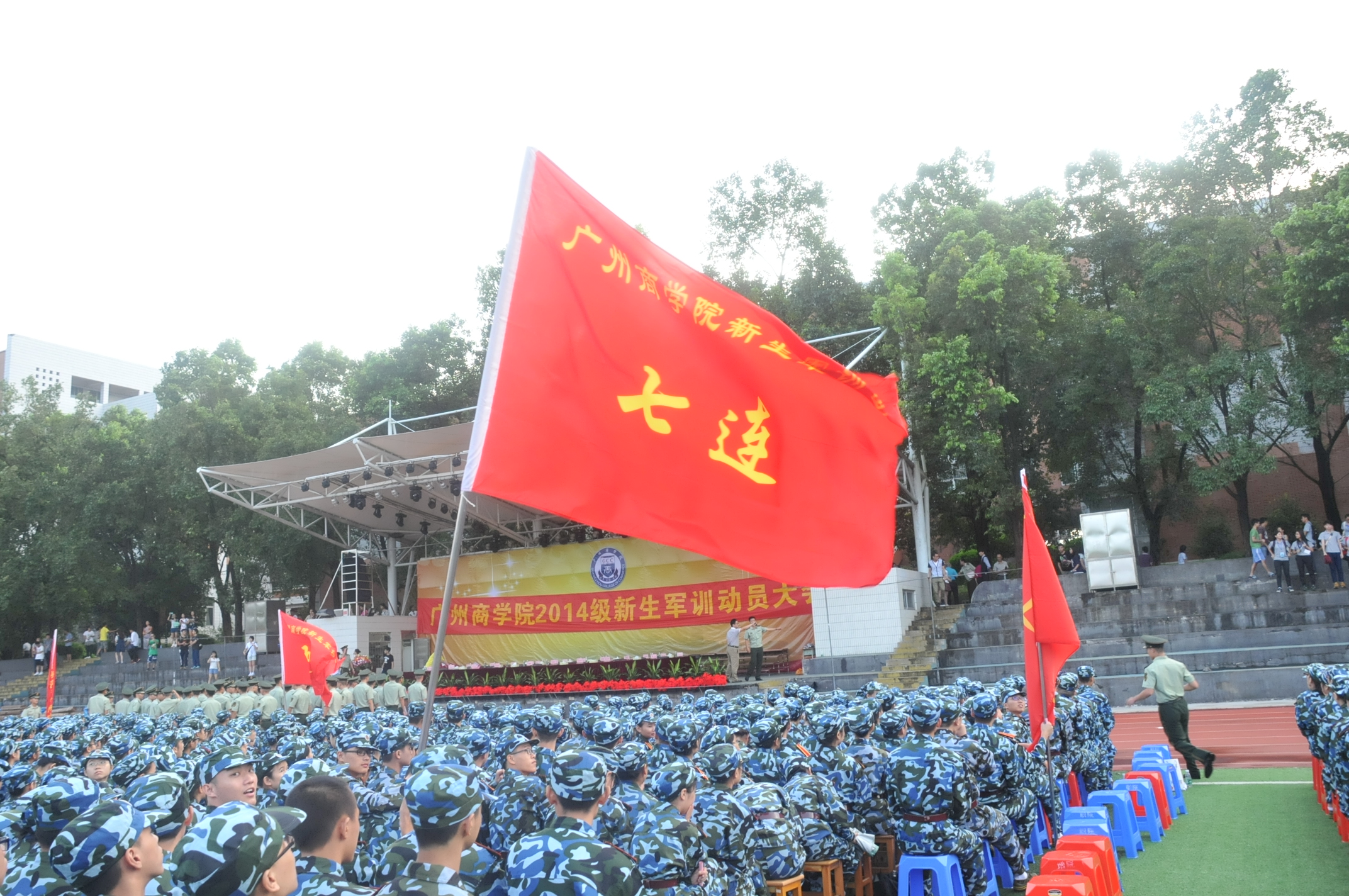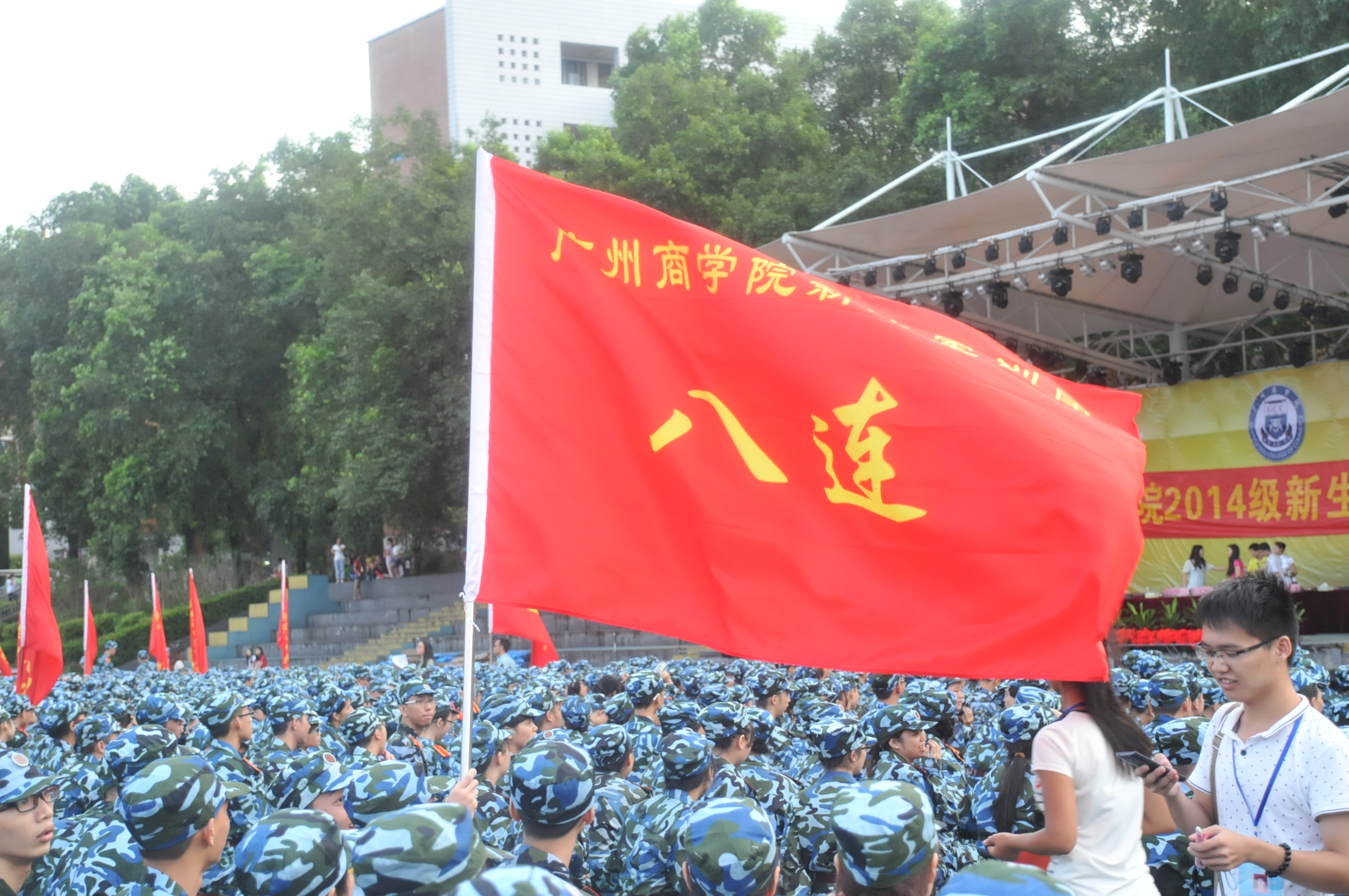 典礼最后,教官上台被授予属于自己连队的队旗。在冼德庆副经理有力宣布军训正式开始后,新生的军旅生活也正式开启。在此,希望14级的学弟、学妹们带着吃苦耐劳的精神圆满完成军训任务,不负青春!
