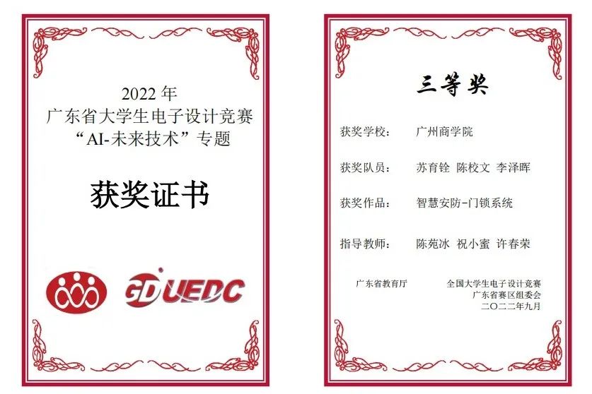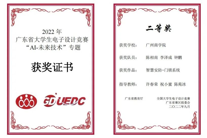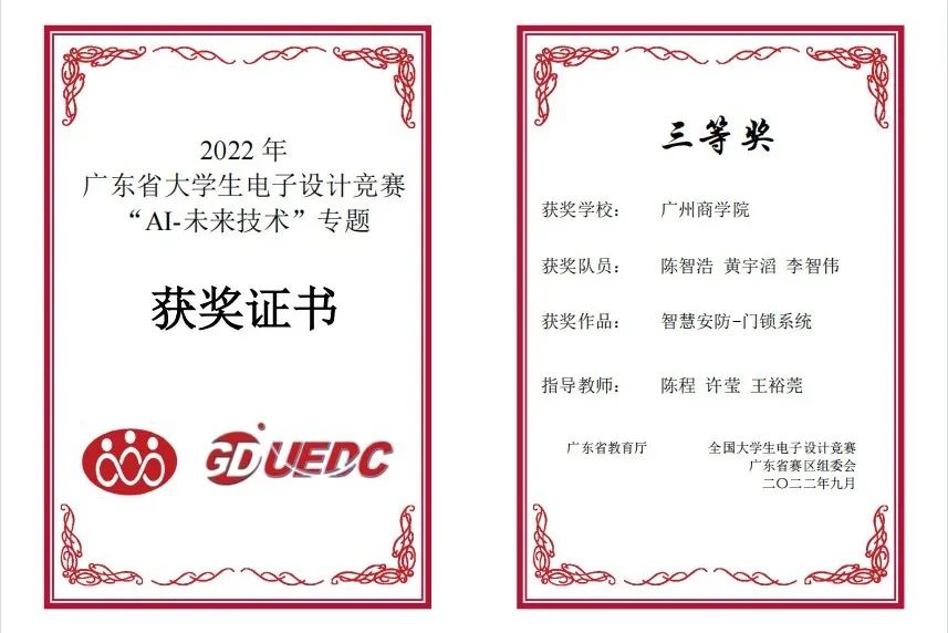 在伟德国际1946bv官网和现代信息产业公司指导教师祝小蜜、胡允娥和许春荣等老师的指导下,伟德国际1946bv官网选拔庄展羽等24名同学,8支队伍参赛在广东省教育厅主办,华南理工大学承办的“2022年广东省老员工电子设计竞赛”中获得一等奖1项,二等奖1项,三等奖3项的优异成绩。