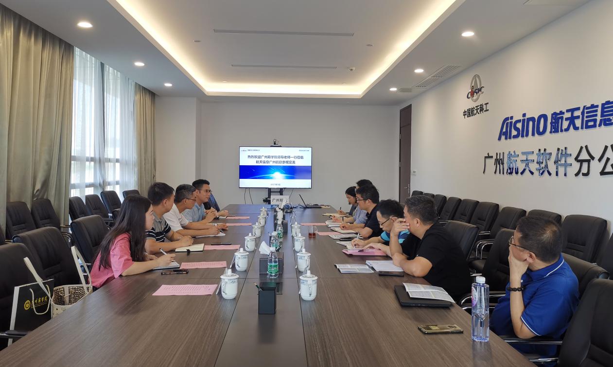 为加强校企联动,提高应用型大学服务社会服务地方经济建设能力,加快企业专业紧缺人才培养。2021年5月10日下午,公司党总支书记关俊明、副经理吴广裕、华为ICT公司副经理李绍强、外国语公司教师潘文晗、辅导员饶宏玉前往航天信息股份有限公司广州航天软件分公司(下面简称“广州航软”)进行校企合作交流,探讨协同育人新模式。广州航软总经理程念胜、技术总监郑刚、综合部负责人郑嘉悦和售前顾问邵毅等领导接待了伟德国际1946bv官网一行,双方举行了座谈会交流。