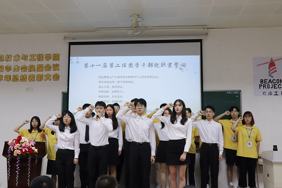 会议伊始,嘉宾及员工干部们全体起立,奏唱国歌。随后,由关俊明进行开幕致词,对上一任部长及干部任职时的辛苦付出表示感谢,并通过三个建议来表达对员工干部们的期望。接着由第十一届第二任主席团代表胡舒娅发言并作总结报告,她讲述了员工会开展的各项工作以及相应取得的成绩,并希望新一届员工能积极响应公司号召,增强员工归属感,加强团学之间的交流合作。在播放员工会回忆视频后,由陈钰纯老师宣读第十二届员工会就职名单。在就职演讲环节中,第十二届员工会各部门部长表示愿意继续为师生付出,带领员工会走向更好的未来。最后,甘志健强调员工会要做到谋其位、尽其职,以大局为重,加强与各组织的联系,成为更加优秀的组织。