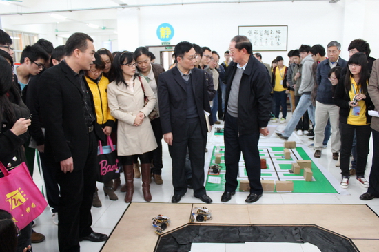 大会结束后,院领导和全体师生移步到图书馆中厅参观了学科竞赛成果展,观看了由获奖者现场演示的“智能小车”和机器人的实物展示。整个成果展示现场十分热闹,公司领导再次肯定了计算机系师生们所获得的可喜成绩。