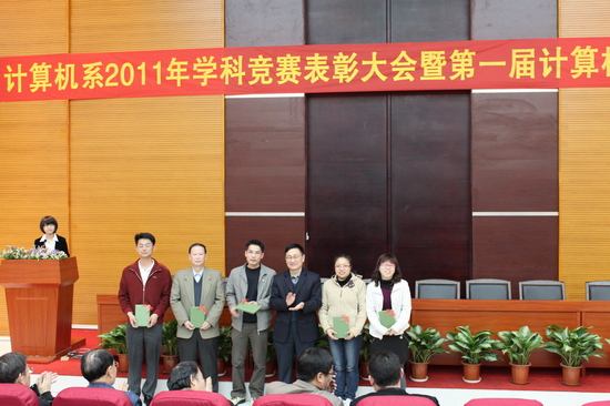 3月15日下午,计算机系2011年学科竞赛表彰大会暨第一届计算机文化节开幕式在图书馆学术报告厅召开。公司党委书记谭马利、公司副经理刘根正、员工处处长张秋艳、教学处处长张忠福、计算机系主任陶培基、党总支书记钟远辉、副主任吴广裕,计算机三个专业学科带头人李师贤教授、鲍苏苏教授、黄求根教授以及计算机系全体师生出席了本次大会。