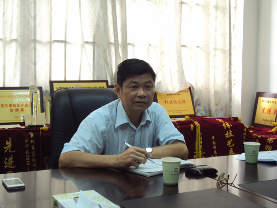 我系党总支书记钟远辉(右一)汇报我系学风建设工作的情况