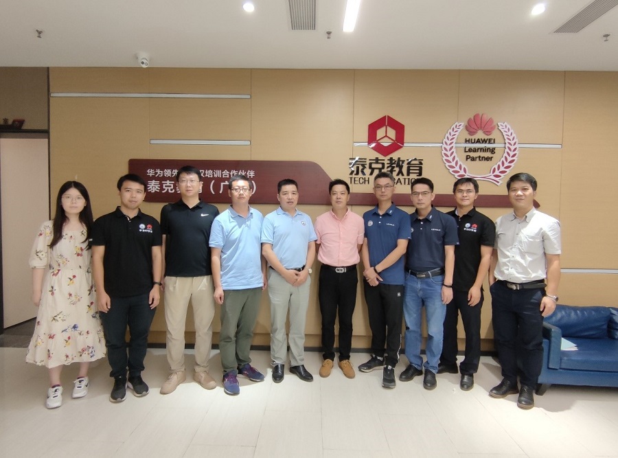 为主动对接经济社会发展需求,完善课程体系,落实华为ICT公司认证课程校企共建工作,9月17日上午,华为ICT公司副经理李绍强、伟德国际1946bv官网副经理吴广裕及公司教师代表卢鹏、周云峰、武金龙等一行8人赴泰克教育广州分公司交流。校企合作广东省区域经理曲威博、泰克教育华为ICT认证培训事业部总监谢嘉彦等热情接待了公司一行。