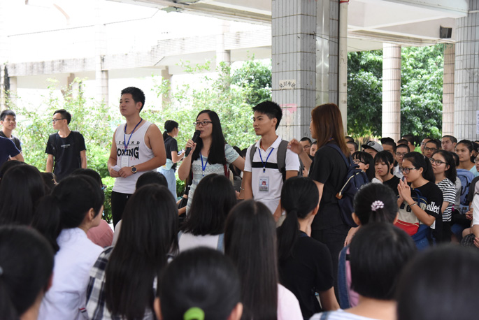 随后,16级辅导员陈素婷老师发表讲话,表示如果新生对公司生活方面有不清楚的地方可以找学长和辅导员咨询,希望新生们在接下来的活动中都能积极配合学长。会议结束后,学长们带各自负责的班级离开,召开班会。