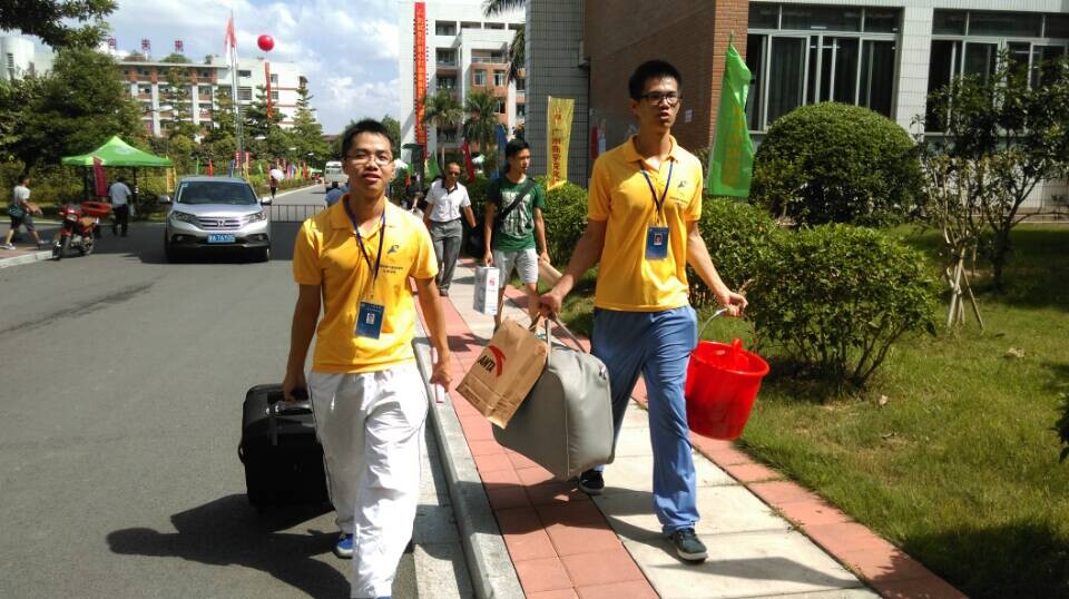 一大早,计算机系陶培基主任,吴广裕副主任和钟远辉书记亲临现场,统一指挥协调迎新工作;各级辅导员、学长们及三大组织全体干部也齐聚迎新现场,各就各位。各级辅导员、学长们热情地接待每一位员工家长,与报到的员工及家长们攀谈,耐心地对新生报到中的疑问进行讲解,做好新生入学的绿色通道工作。