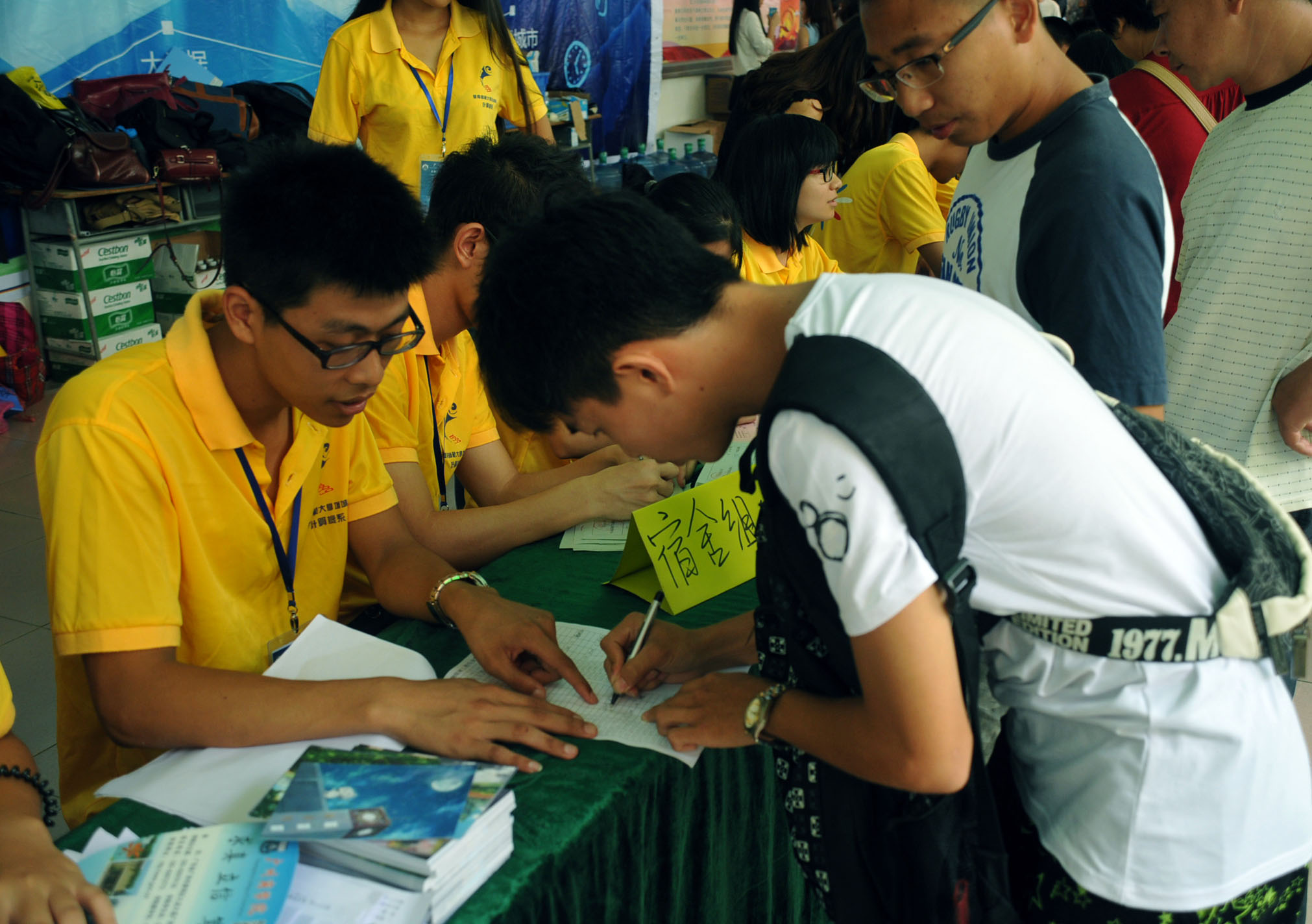 工作人员认真接待新生