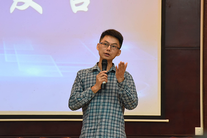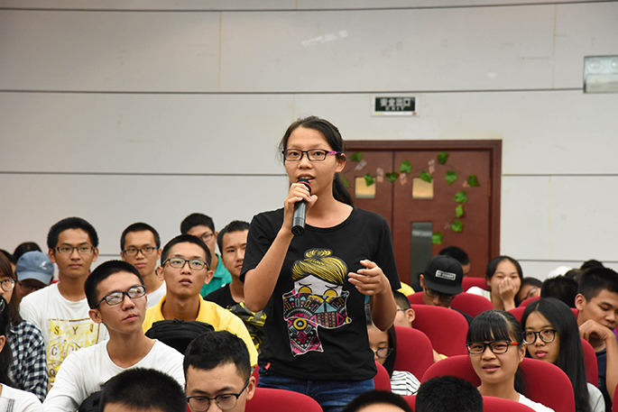 在访谈中,胡老师以及三位师兄围绕“团结”、“创新”这两个主题分享了他们的心得,他们都认为课堂知识非常重要,只有打好基础才能为后面参加竞赛做铺垫。在谈到创新这一问题时,胡老师重点强调了自己所起的作用是抛砖引玉,激发员工的创新力,培养员工的团队合作能力,并认为创新源于生活,鼓励同学们多参加学科竞赛。三位师兄也分别分享了参赛过程中遇到的困难和解决的方法,讲解了自己的参赛作品和参赛作品的灵感来源。接着,师兄们对新生所提的问题一一解答,现场气氛被推至高潮。