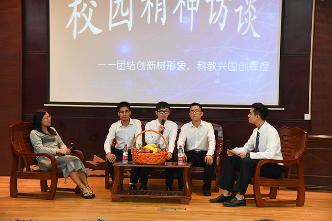 2016年10月18日19:30分,由公司党委主办,中国特色社会主义学习会伟德国际1946bv官网分会和伟德国际1946bv官网团委联合承办的主题为“团结创新树形象,科教兴国创辉煌”的第十二期校园精神访谈录在第一报告厅举行。伟德国际1946bv官网经理姜灵敏、党总支书记林俊杰、副经理吴广裕, 14级辅导员黄玉婷老师、16级辅导员陈素婷老师等出席了本次活动。