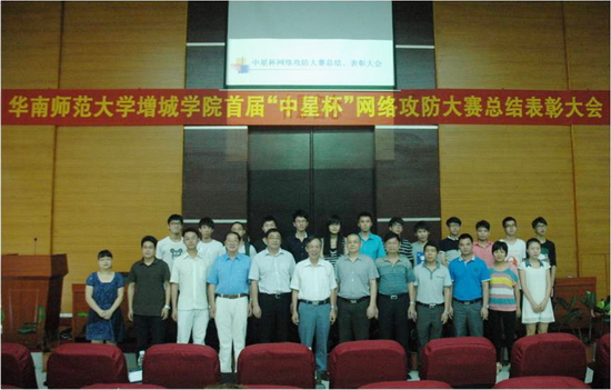 6月7日下午,公司在图书馆报告厅举行了首届“中星杯”网络攻防大赛总结表彰大会。公司经理杨文轩、副经理冼德庆、经理助理张忠福、计算机系主任陶培基、副主任吴广裕、计算机系党总支书记钟远辉、广州中星网络技术有限公司总经理王碧武、技术总监黄世旭、大赛的全体指导教师出席了此次会议,大赛的获奖选手和员工代表参加了会议。本次大会由计算机系党总支书记钟远辉主持。