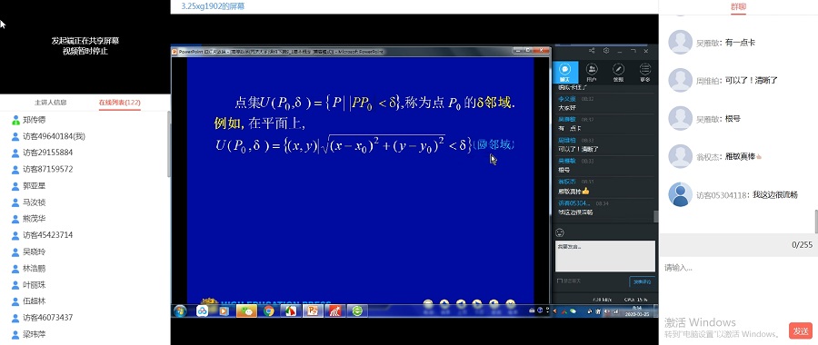 郑传德的“高等数学Ⅱ”课程于当天8:20在超星学习通平台直播授课,主要内容是“多元函数的基本概念”,郑传德从作业点评开始,展示了优秀作业,约定网络平台作业标准,指导员工使用扫描软件优化电子作业。灵活运用直播平台软件,注重课程内容衔接,演绎了多元函数的邻域、区域、概念、定义域和极限等重点内容。授课过程理论讲解和平台互动很好结合,知识学习与课堂测验合力促进,随堂练习和专题讨论共同检验,线上直播课堂和线下平台学习同步推进。郑传德表示,目前以三倍于传统课堂的备课时间准备网络教学,目标是达到近似甚至超过传统课堂的教学效果。